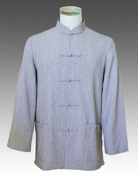 男士夏季灰色唐裝 描述:長袖 面料: 棉 65% 麻 35% 編號:nf-113