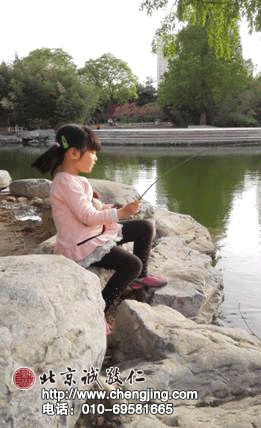 路路在讀誦《聲律啟蒙》的時候,拿出當司儀班長的勁頭,字正腔圓,音色渾厚,精美的語句用孩子稚嫩的聲音讀出來,簡直是一種享受,仿佛置身于所描繪的景物之中。雖然目前以讀誦為主,不要求孩子了解經典文章的意思,但是通過慢慢的熏習,讀書萬遍,其義自見。有一次放學后,天色還早,帶路路去小公園玩耍。她撿起地上的柳條,坐在湖邊石頭上佯裝垂釣,嘴里振振有詞,我細細聆聽才明白是《聲律啟蒙》里的一句話:春水才深,青草岸邊漁父去;夕陽半落,綠莎原上牧童歸。人、景、詩、意立刻勾勒出一幅和美、恬靜的畫面。《聲律啟蒙》里有那么多句子,她為什么單單在此時此景選擇這樣一句來有感而發呢?我想這就是經典本身的魅力所在,感染打動著每個人,無論是大人還是小孩。