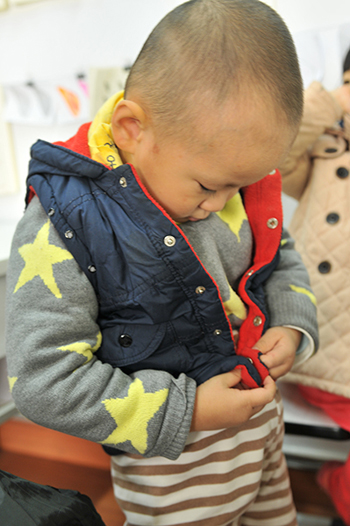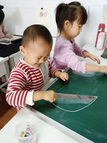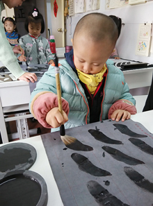陪同孩子一整天的學(xué)習(xí),讓我感受到:環(huán)境好,實(shí)在是因?yàn)槔蠋熀茫⌒⌒切侨龤q多,生活自理能力還不夠,吃飯、午睡、上廁所、增減衣服等都要人照顧。而這里的幾位老師非常細(xì)心、耐心,不僅照料小朋友的這些生活細(xì)節(jié),而且手把手地教他自己學(xué)著做。以前星星在家,像吃飯、穿衣、上廁所這些事一定要大人幫忙才行,真的是「衣來伸手,飯來張口」。到了書法教室,沒多久就能夠也很樂意自己去做了。雖然是這么細(xì)小的事情,但卻是他人生真正的初學(xué)處。老師的耐心付出,讓星星消了一分驕奢氣,也讓我們父母老人輕松了不少。
