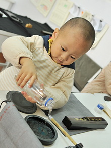 正在為如何管教孩子發(fā)愁的時候,想起了亞運(yùn)村的楊老師書法教室,于是把這個頑皮不受教的小男孩送到了這里。