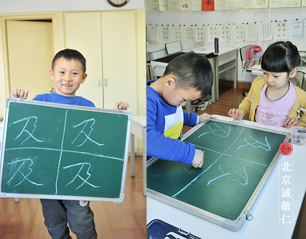 我發現,原來楊老師書法教室的氣氛總是讓孩子很放松,很自在,即便是天天去也很歡喜。這是我接送孩子逐漸體會到的。像他爸爸就曾納悶地說:「寫一天的字,那么個小教室,也不覺得枯燥,孩子居然還喜歡去!」