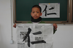 藍昊誠同學今年九歲,是北京誠敬仁本期書法精進班中年齡最小的學員。第一天看見他時,黑黑瘦瘦的,眼神中還有些膽怯。然而在學習班一個月的時間里,他堅持每天和大家一樣練習書法近八小時。漸漸地,小昊誠臉上的笑容變得越來越燦爛,言語也風趣活潑多了,眼神中充滿了自信。