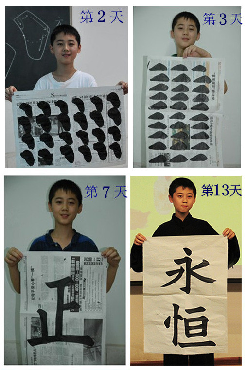 在短短的14天的學習中,通過「永字八法」基本功的練習,初學者已經能掌握書法的基本筆畫和筆法應用,為以后的繼續提升打下了堅實的基礎。更可貴的是,好幾位年齡較小的同學在短暫的學習中,去除了身上的浮躁之氣,定力逐漸得到培養,連待人處事的氣質也變得彬彬有禮了。