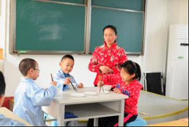 年齡較小的學生們,在專門開設的學生班里,也開展了定心描紅、書法、經典讀誦、太極拳練習等多種德藝課程的學習。快樂而充滿著人生意義的學習,讓孩子們遠離了網絡游戲,遠離種種不良外境的影響,全身心地沐浴在傳統文化的學習氛圍中,在孩子們幼小的心靈上,播下了傳統文化仁德的種子,幫助孩子們在未來的生活中健康正直地成長。