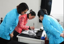 2、雖然自己年近不惑,對能否學好書法,并無把握,但是在老師們的耐心教導和鼓勵下,發現學習書法變得很有信心、很有興趣,看來正確的教學方法是很有意義的。
