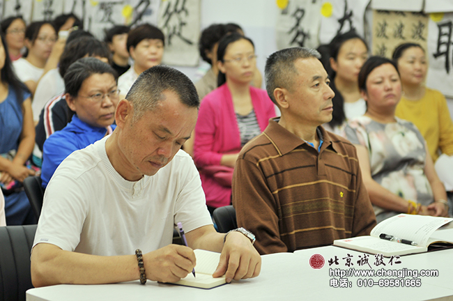 列舉王羲之、顏真卿等歷代書法世家的家規(guī)庭訓,并結合自己多年書法德藝教學的經驗,從習練書法能培養(yǎng)孩子的清靜心、專注力、以及從書法布局引伸到習書,如何提升做人的計劃性和圓融度等實際操作,闡釋了書法影響做人境界的深刻內涵。同時也分享了多位老人因練習書法描紅以及彩繪,而令身心得到安寧和健康的教學成果。以培養(yǎng)書法興趣愛好為例,強調了培養(yǎng)良正興趣愛好,對孩子啟蒙教育以及成人持家和養(yǎng)生處事的重要意義。