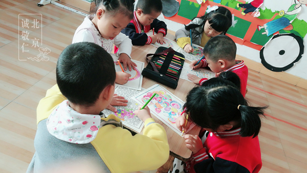 福建省武夷山市花朵幼兒園,在2016年開始應(yīng)用多元德藝教學(xué)法,開展經(jīng)典誦讀、定心描紅、快樂《彩繪》等特色教學(xué)。孩子們最大的改變是:通過彩繪、描紅,增長了定力,原來鬧哄哄的教室,也慢慢變得安靜。 不同年齡 不同的重點(diǎn) 幼兒班的孩子小,“不能特別要求”他們,孩子們拿著畫筆自由涂色,享受探知小手能力、感受色彩的過程,同時(shí)也練習(xí)握筆。 小班階段,讓孩子們嘗試涂色在圖形里,提高手控能力。中班階段,引導(dǎo)孩子們嘗試順著圖案的方向,線條從頭連貫到尾。 大班階段,鼓勵(lì)孩子們嘗試對(duì)畫面進(jìn)行改繪,加入自己的創(chuàng)意,同時(shí)注意畫面的整潔,培養(yǎng)他們保持活力又不失慎重的做事原則。