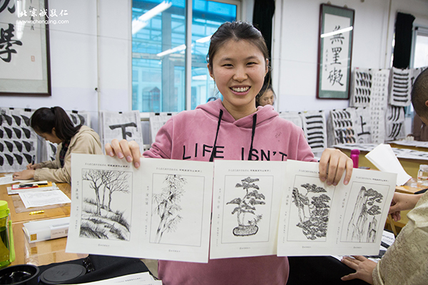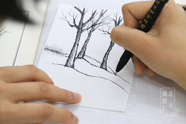 還有給我印象很深的《硬筆國畫》,第一次上硬筆國畫課,第一個內容是畫圓,我心想:時間這么寶貴,為什么要畫圓圈呢?可是畫了之后才體會到其中的深意。 因為畫的時候必須要慢,要專注,不然肯定是畫不圓的,一個圓畫完還想畫第二個,一個不圓,下一個就想畫圓,就這樣一直畫下去,漸漸地心無旁騖,平心靜氣,才理解老師的方法都是教我們練靜定的功夫。
