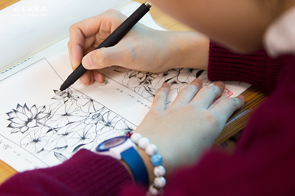 這與其它的美術教學很不一樣,老師的方法是拿起來,畫下去,人人可學,人人可畫,簡單易學卻都直指內心。當心真的能安定下來,可以了解真正的自己,從而修養自己、珍愛自己。