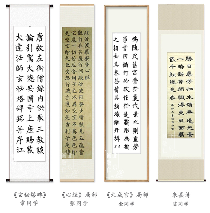 從靜中觀物動,向閑處看人忙,才得超塵脫俗的趣味;遇忙處會偷閑,處鬧中能取靜, 便是安身立命的工夫。 ——《菜根譚》 有幸的是,我們以筆墨作舟,一筆一筆出發,一程一程升華,能以此滋養安身立命的功夫。這次書法挑戰賽設定了半個月的期限,定好目標逐一完成,就會對時間很計較,否則永遠被手機、聊天刷得“沒時間”。 這中間也許會經歷一個很難熬、想放棄的過程,但相信堅持下來的同學都能體會到:隨著一次次挑戰、一步步長進,心眼手的功夫都會更上層樓,這種快樂無與倫比。繼續努力,作為楊老師親傳學生,你們一人學好,可以利益一省一地。 先來欣賞幾幅作品,更多精彩陸續上線 ~