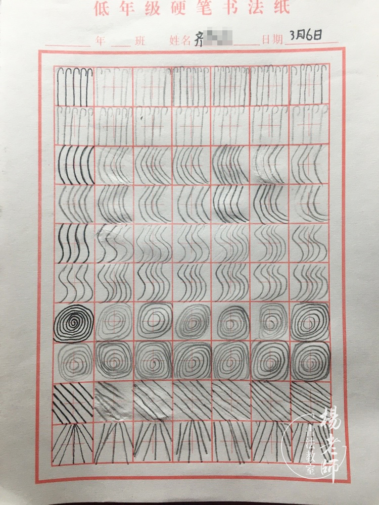 針對(duì)學(xué)生:3~6歲學(xué)齡前幼兒 ![]() 第一期:線控練習(xí) 硬筆學(xué)習(xí)由易到難,所以第一期的學(xué)習(xí)從簡(jiǎn)單的線控練習(xí)開(kāi)始,要從基本線條開(kāi)始,訓(xùn)練畫(huà)線條的能力。以畫(huà)橫線、豎線、斜線、曲線、折線、點(diǎn)線等簡(jiǎn)單的方式,鞏固正確握筆姿勢(shì),并訓(xùn)練手法(指法、腕法)和 眼法(訓(xùn)練眼力)的協(xié)調(diào)性,熟悉入筆、行筆和收筆的基本用筆和線條處理。能讓孩子從簡(jiǎn)單有趣味性的線條開(kāi)始接觸硬筆,不會(huì)因?yàn)樘y而讓孩子產(chǎn)生抵抗心理。 再往后的幾期課程中,也有沿用線條練習(xí),在上課前都會(huì)花幾分鐘的時(shí)間與孩子們一起練習(xí)線控,讓手指做一個(gè)課前活動(dòng)。 ∷∷ 第一期 部分作業(yè)打卡 ∷∷