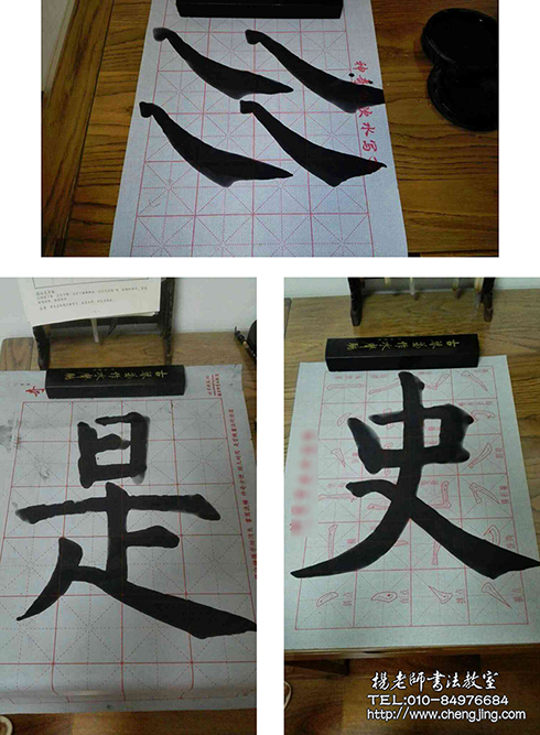 現在格格學習已經有一年半的時間,非常喜愛書法,常常是兩個小時的課程已經結束,仍不想停下筆來。現在已經學到「永字八法基本功」捺的部分,寫出的大字,筆劃到位,很有氣勢,一個新的字經過老師示范后也能很快掌握。