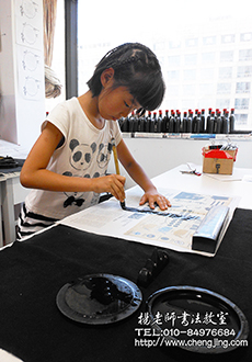 格格是一個活潑開朗,懂事可愛的小女孩,稍有些缺乏耐心。格格的母親希望能通過書法藝術,來培養孩子的專注力,幫助孩子磨練耐性、更加穩重。因此自2014年初,格格就來到「楊老師書法教室」學習書法了。