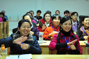 為了讓大家獲得較全面的提升,在課前還安排了欣賞「德音雅樂」并學(xué)習(xí)手語歌曲。在手語老師的帶領(lǐng)下,歌聲與優(yōu)美的手語動作相結(jié)合,