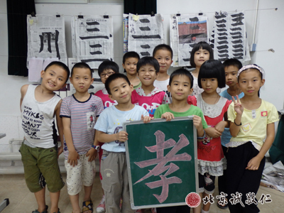 百善孝為先;書法二班的小學員學習描紅課程;