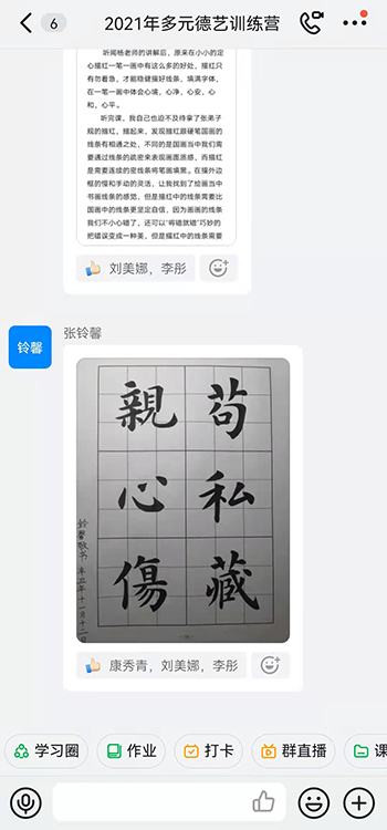 楊淑芬老師親自任班主任,集40余年的傳統(tǒng)文化教學及書法教學傾囊奉獻;