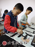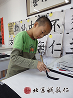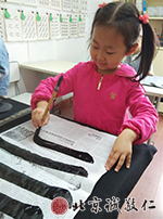 少兒班同學(xué),大都是七至十歲,在老師的諄諄教導(dǎo)下,力行孝悌忠信禮義廉恥等中華傳統(tǒng)美德,并學(xué)習(xí)毛筆書法與硬筆書法。毛筆書寫先采用站樁懸腕書寫法,養(yǎng)成健康正確的寫字姿勢,才能寫出有功力的好字;懸腕熟稔之后,再學(xué)習(xí)枕腕書寫,循序漸進,事半功倍。