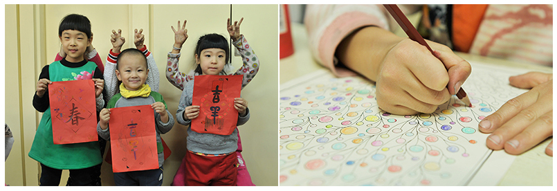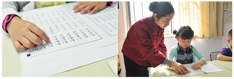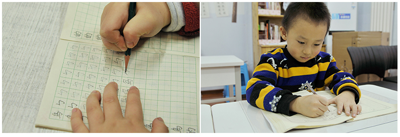 這里是小班教學,老師有耐心有方法,經常鼓勵孩子,他就越學越喜歡學。彩繪、描紅和書法能讓他定下來,上課走神的現象少了。最大的變化是,他上幼兒園時從來都是自己一個人玩,來學習一段時間后心胸開闊了,居然主動提出要去找以前的同學玩,他爸爸可高興了!