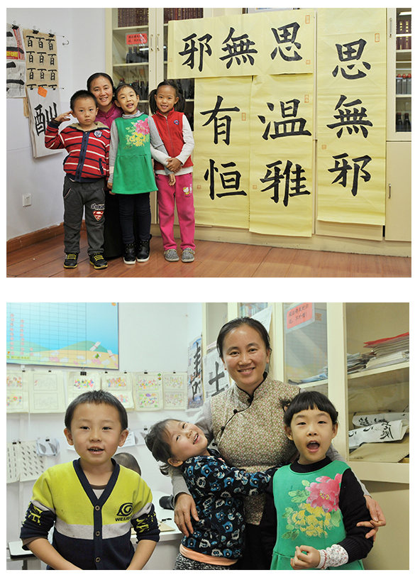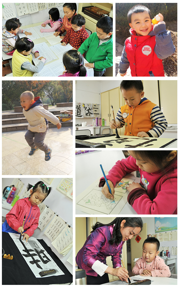 看德育動漫,讀《三字經》,從小接觸中國文化,就連中午的游戲活動,老師們都把謙讓友愛植入其中,在她幼小的心里種下愛的種子。書法教室像世外桃源,老師們更是在用心教育下一代??吹嚼蠋焸兊暮脴幼?,真正感受到孩子是有福氣的!