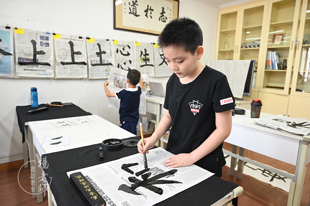 宸宸來「楊老師書法教室」時間比較久了。雖說他長了大高個,但卻比同齡孩子單純好動。人在少年班,但稍不留神就不見人影,原來他早已竄到其他教室或者辦公室、水房等地,弄出一些聲響巨大的動作,用足以嚇人一跳的音量與人說話。故爾,老師們安排讀經、描紅來增強他的自制力和定力。