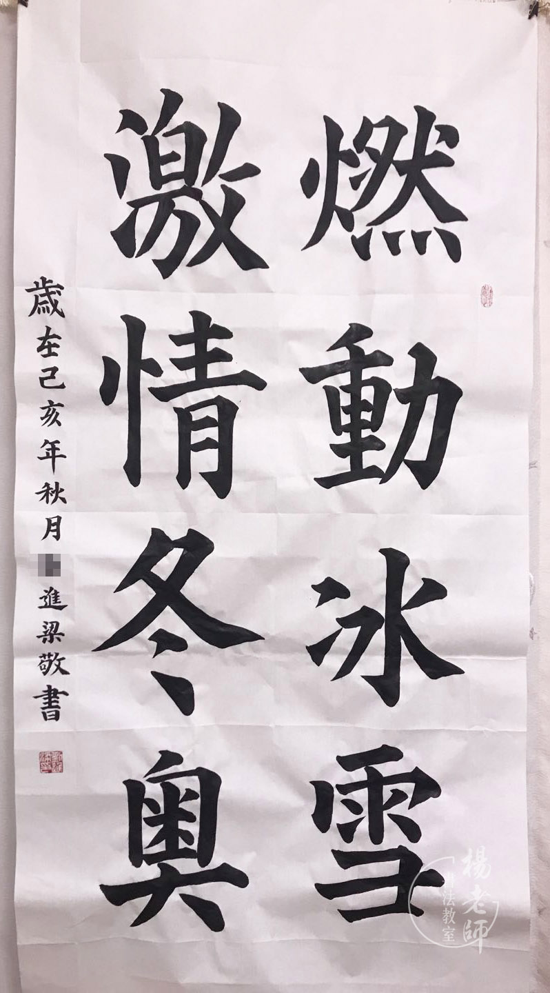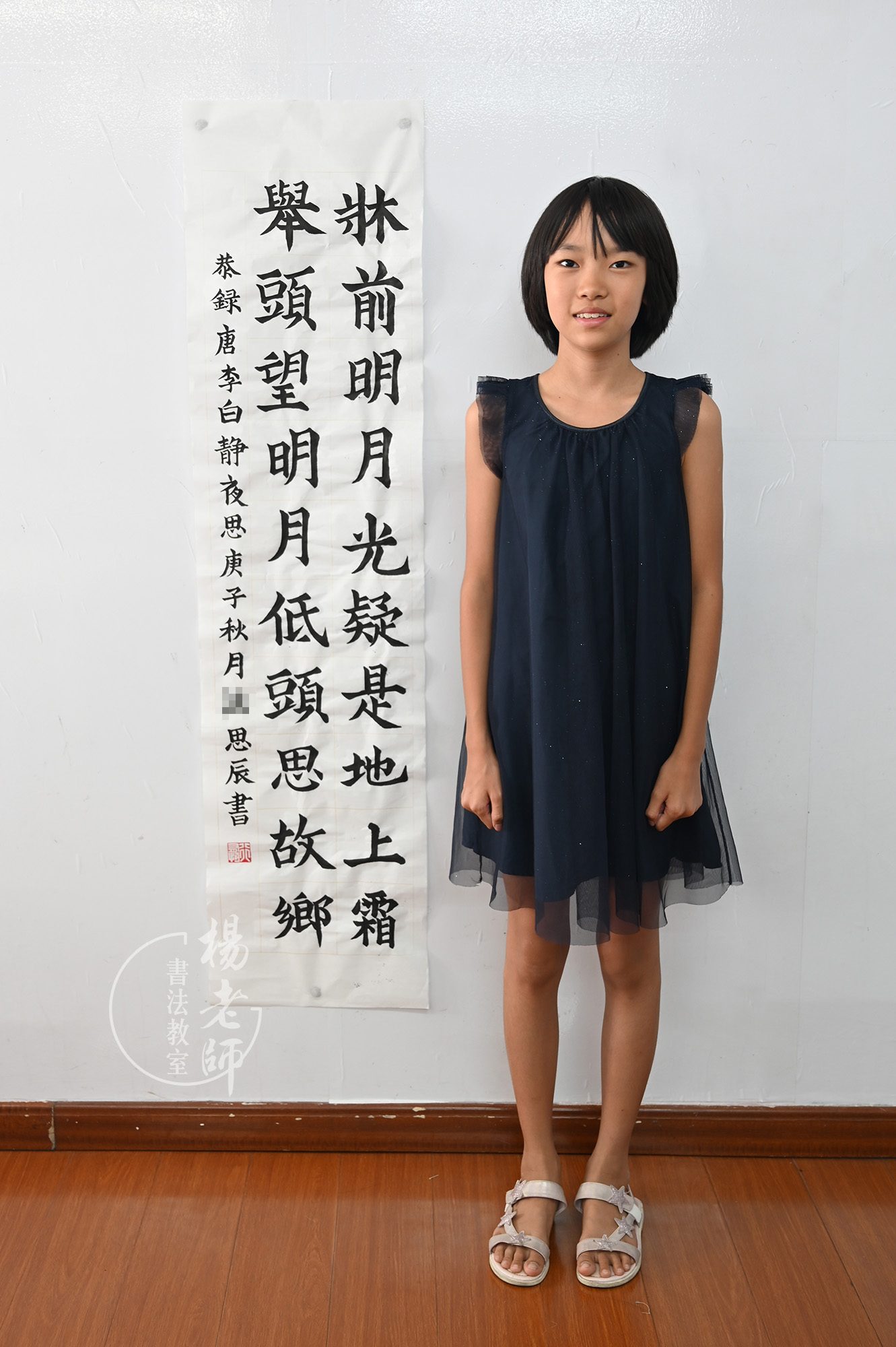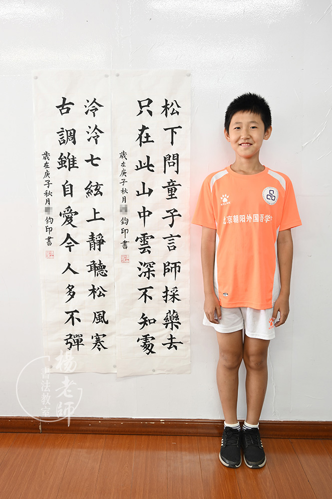 進梁同學便是其中的代表。他四歲多進入「楊老師書法教室」學習,一轉眼已經六年了。這六年里,有母親的一路陪伴,有進梁自己的自強不息。不知克服了多少次節(jié)假日旅游的“誘惑”,堅持來書法教室度過。在繁重的課業(yè)之余擠時間習練,在疫情居家期間苦練長幅作品。精雕細琢的一筆一畫,是經過萬千次反復錘煉后凝結出的精華。這需要在平常日子里自律潛沉地堅持??菰?、單調、寂寞嗎?不,下筆有明師先賢的諄諄教誨,四海之內有無數靜靜的同行者,于無聲處樂在其中。