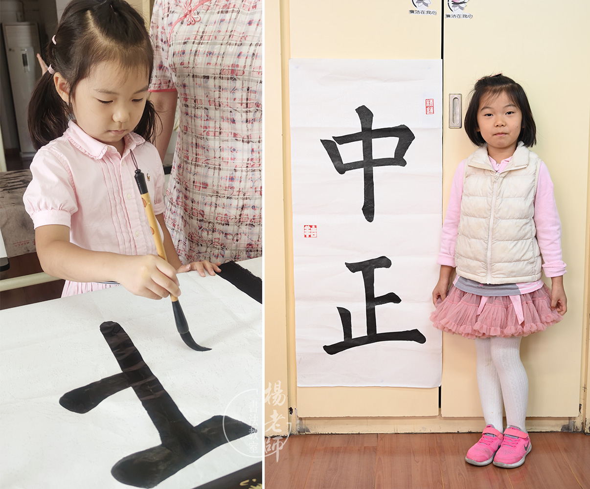 晴晴,習書二年,「楊老師書法教室」幼小銜接德藝素質班學員。和班上所有的學員一樣,晴晴的習書之路是從描紅起步,水寫帛反復練習基本功。等到有一定基礎之后,再開始練習用墨書寫。對于幼齡的孩童,這樣循序漸進的教學方法幫助他們從小養(yǎng)成能定能靜的良好品格。晴晴也在這樣的學習氛圍里穩(wěn)穩(wěn)當當地走過來。雖然她還沒上小學,但也寫了一幅作品“中正”來紀念自己已經走過的學習之路,為新學年更加努力加油鼓勁!