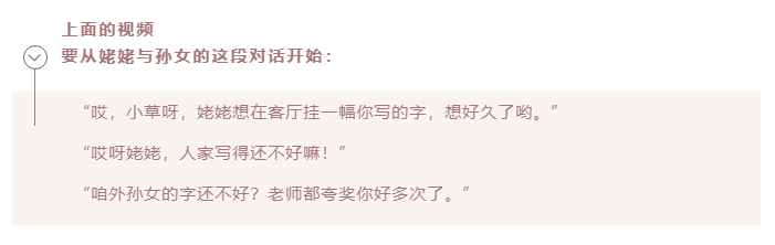 要拍照片留作紀(jì)念了,這是小草學(xué)習(xí)書(shū)法的一個(gè)重要日子。仔細(xì)地整理好頭發(fā)、服飾,露出最美的笑容,將這份用心書(shū)寫(xiě)的禮物送給最親愛(ài)的姥姥和媽媽。
