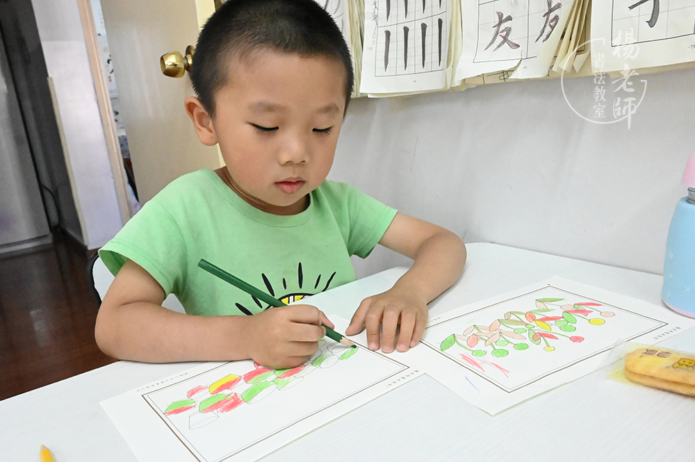 在「楊老師書法教室」持續的學習,桐桐好的變化也越來越多。以前放學進家門,就急著沖進屋子,喊他換鞋洗手都會有情緒。現在他能在進門的時候自覺地換好拖鞋,還把室外鞋子擺放好,自己把書包放進書柜里,也能自己洗手。吃完晚餐,自己就把碗和勺子送到廚房。一些規矩,我告訴他之后也能很快就接受,性情真的是柔和下來了。