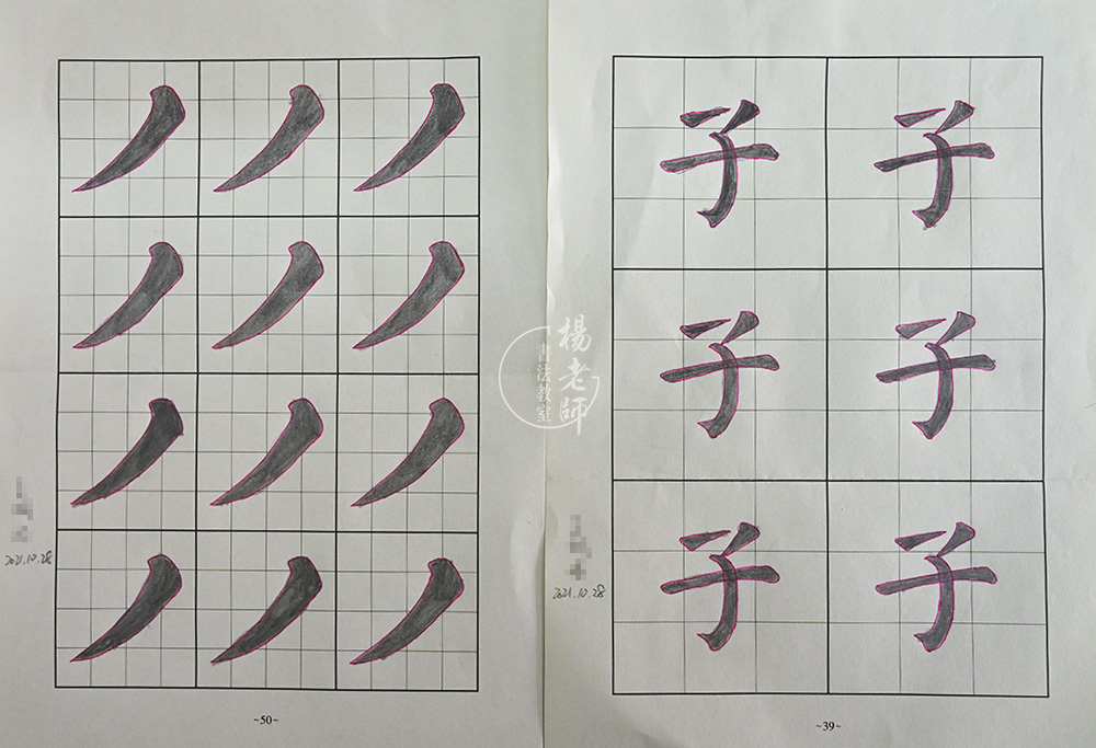 今年暑假8月份以及9月中旬期間在「楊老師書法教室」德藝素質班持續學習。