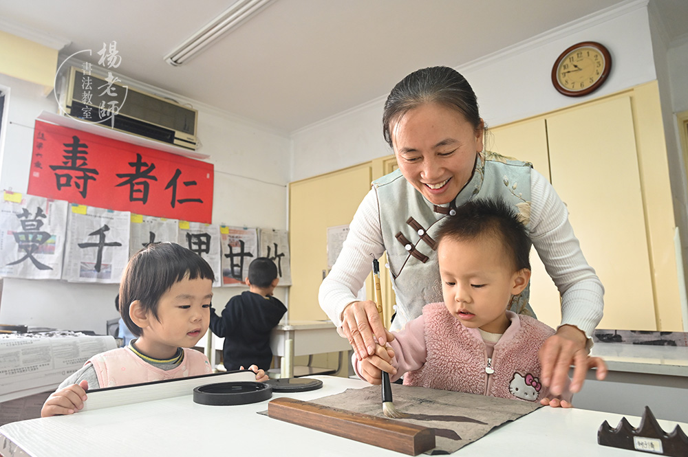 豆豆在書法教室,做起了小學(xué)姐、小助教。 |