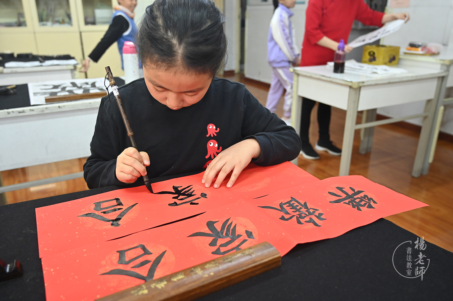 窗外的凜凜寒風(fēng),絲毫沒有減弱同學(xué)們對書法滿滿的赤誠之心。
