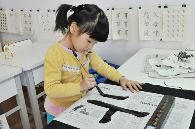 幼兒園開學在即,我試著問驊兒,要去幼兒園還是在書法教室繼續學習?孩子出乎意料的告訴我,要去書法教室。可是家距書法教室大約一個小時的車程,實話講長期送驊兒跑這么遠去學習,我和先生開始真是犯難了,這對于我們也是個挑戰。但是看到女兒的進步和老師們的耐心教導,我還是說服先生,先試一個學期吧!