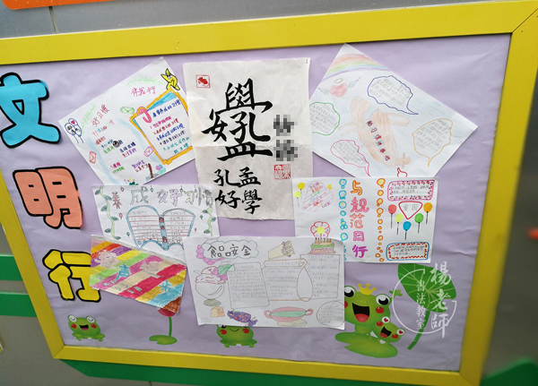 9月4日周一把兩幅字交給了班主任,后來與班主任通電話,才知道后面的事情。老師在全班表揚了兒子的毛筆字寫的真好,說把全班同學給震了,并鼓勵他說:老師雖然不會寫,但是覺得他的字寫的太好了,一定要堅持寫下去,并不一定為了謀生,陶冶自己情操也要寫下去,并告訴同學們有一個愛好并堅持下去是很幸福的事。老師還讓兒子給大家解釋一下「孔孟好學」,其他同學都頭一次看到、聽到這樣的中國漢字,太奇妙了,這是不是也算中國文化的傳承與傳播呢?