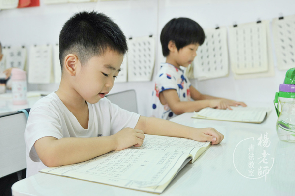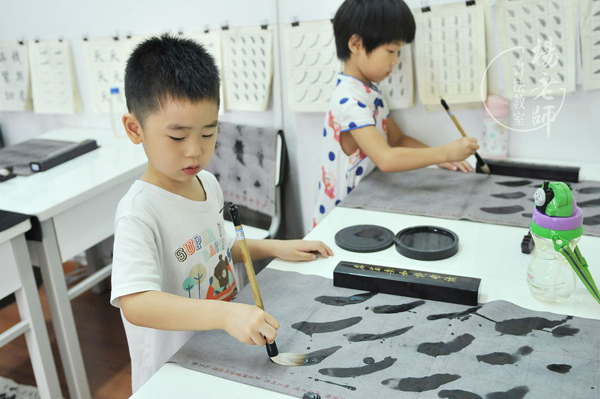 我和孩子每周就開始往返于幼兒園和「楊老師書法教室」之間,小石頭在書法教室學會了很多: