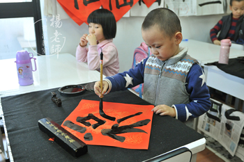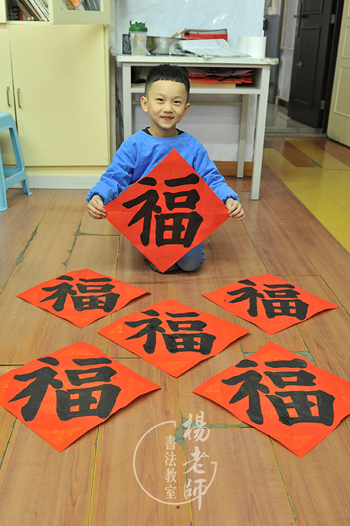 春節集福開始啦!「楊老師書法教室」這兩天格外熱鬧,紅色的祝福貼滿了教室,烘托出春節即將到來的火熱氣氛。