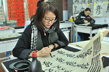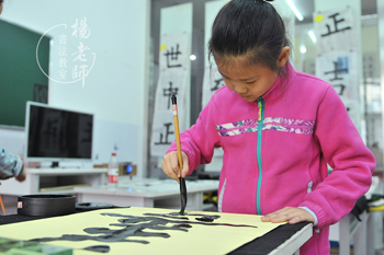 母親表示:學習書法,心態日趨平和,靜心修身養性,工作和生活更和諧了。女兒楊同學正為西城區藝術節準備作品。