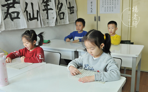 每當(dāng)明媚的晨光灑進(jìn)「楊老師書法教室」幼小銜接班時(shí),老師已經(jīng)在靜謐祥和的教室里等待孩子們的到來。從早到晚,老師就像汩汩不絕的源泉潤澤著孩子們的心靈,幫助他們在每一個(gè)機(jī)會教育點(diǎn)里回頭是岸。