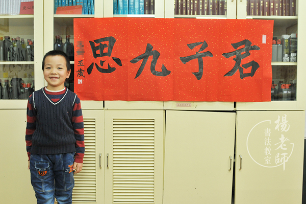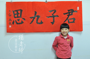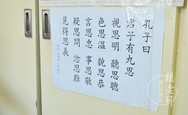 年前「楊老師書法教室」的墻壁上多了一張A3紙,上面寫的「君子九思」的內容。