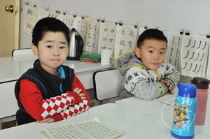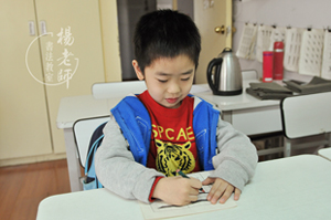 中午描紅課,小石頭磨蹭好久才坐下描紅,于是老師也拿出一張描紅,以比賽互進的方式督促他:“你就慢慢磨吧,讓老師多描一點。”他聽了趕緊專注地描,生怕自己不努力會落后。
