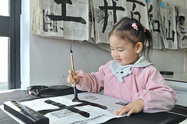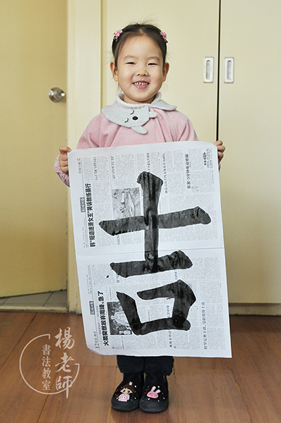 學習書法大概兩周后的一天下午,她放學回家一臉嚴肅地說:“媽媽,從明天起我再也不能哭了。”“為什么呢?”“夏老師說,如果我再‘下雨’,就不教您寫大字了。”我心中不禁贊嘆書法教室的老師們真有智慧,有了親師通力合作,效果很好,真心感恩「楊老師書法教室」的老師們。