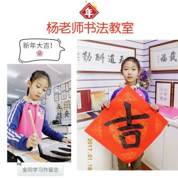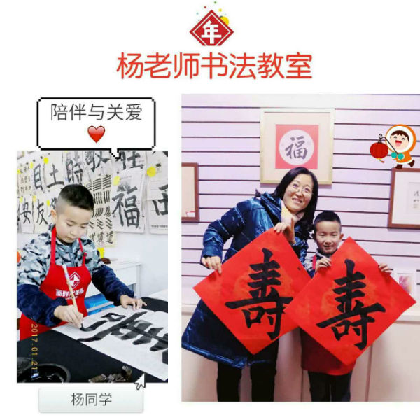 祥和喜氣的「福」與「壽」,活潑稚氣的「吉祥」,還有大哥哥們清正端秀的對聯,把楊老師書法帶回家里,貼在門上,暖在心里。感謝所有老師的真誠付出,感謝同學們的精勤努力,感謝所有家長們的悉心配合,楊老師書法教室以及所有的同學們祝福大家新的一年里,萬事如意,吉慶安康。