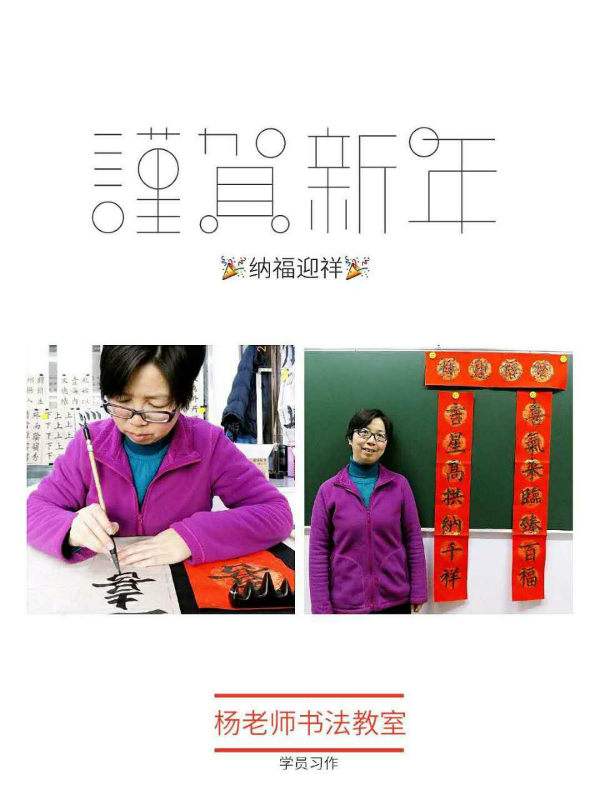 張老師在給我示范春節賀詞,