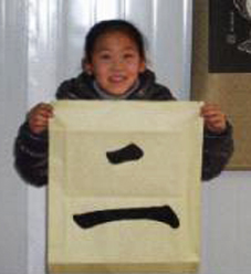 那夜老師和孩子靜靜地聊著,又一次幫孩子樹立信心,孩子志向找回來了。第二天重新來到書法班,成功地寫出了「下」字,對書法又有了信心。孩子心中當傳統文化老師的心愿再一次生起,而且做了勝利的手勢,說:「寫好書法,那是必須的。」