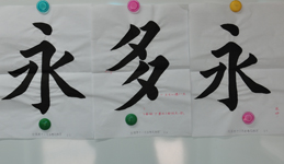 2011年9月,從開始練習(xí)第一個(gè)基本筆畫右側(cè)點(diǎn),到2013年2月已能書寫諸多的基本字。僅僅通過「藝術(shù)空間站」的書法遠(yuǎn)程學(xué)習(xí),金女士創(chuàng)造了屬于自己的成功,同時(shí)驗(yàn)證了楊淑芬老師「永字八法」的實(shí)用性、可靠性。