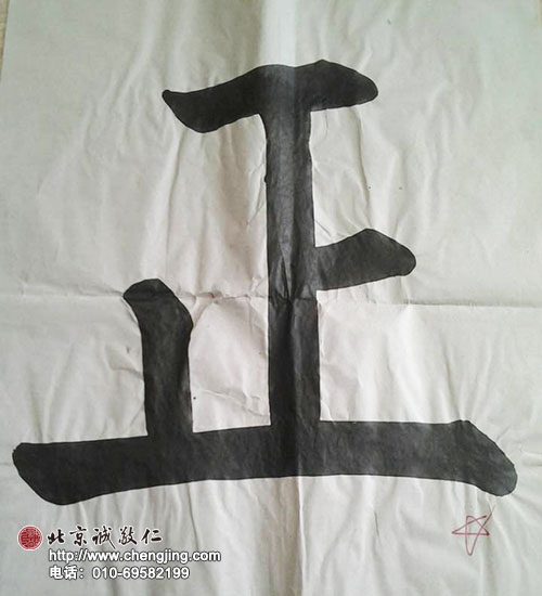 六天的書法學習,從「永字八法」一點一橫一豎練起,一心投入到書法之中,心無雜念。后來在老師的指導下寫出了第一個字「正」。看著紙上大大的「正」字,我簡直不敢相信是自己寫出來的,欣喜和興奮的同時,不禁感慨練書法的過程真是一個忘我的過程,胸有成字,胸有書藝,揮灑筆端,盡顯自然。書法令人把原來所有不如意的東西全部忘掉,拋卻紛擾世事,忘記了時間空間的概念,仿佛得以脫胎換骨,回歸本真。