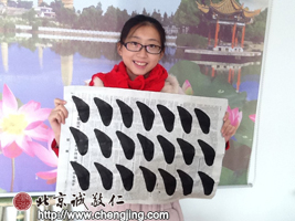 曾同學:女,13歲,住在廣州,只有在2013年,2014年兩個暑假學習書法,累計學習天數約40天。2013年被姨媽和媽媽帶到小院學習九天,然后被帶到汕頭這邊的書法班繼續學習書法。通過快樂的學習,對書法產生了濃厚的興趣,還跟汕頭的同學產生了難舍難分的友誼。這也是2014年暑假再次回汕頭學習書法的動力,在學習書法過程中學會了跟同學相互合作,愛護動物,學會處事待人接物的方法,變成一位懂事的好孩子。