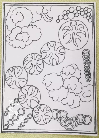 廖女士和兒子一起練習硬筆國畫 一起打卡