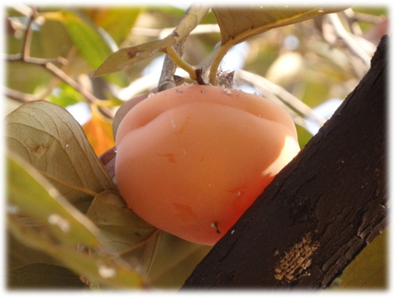 走在樹(shù)下,不時(shí)有樹(shù)葉和著沙沙的聲響,徐徐的飄落在我的腳邊,像是歡迎我的到來(lái),又像是要特別提醒我的注意。我微微的笑著,抬頭仰望滿枝的柿子,瞬間想變身畫(huà)家,靜坐于旁邊的圓木長(zhǎng)凳,鋪開(kāi)畫(huà)板,美美的畫(huà)它一天。將那如布的藍(lán)天,暖暖的紅日和這金色的柿子,一并畫(huà)入這其間。