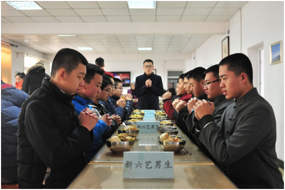早晨7點(diǎn)半早餐時(shí),新六藝班的同學(xué)們,在餐前集體大聲念誦餐前感恩詞:感恩國(guó)家培養(yǎng)護(hù)佑,感恩老師悉心培養(yǎng),感恩農(nóng)夫辛勤耕種,感恩食物給我們營(yíng)養(yǎng),感恩天地萬(wàn)物及一切付出的人,我們生活在感恩的世界里,祝大家用餐愉快!在朗朗的餐前感恩詞結(jié)束后,同學(xué)們才開(kāi)始就餐。